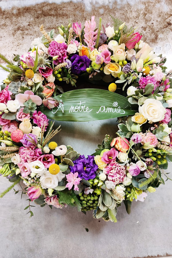 Les fleurs de deuils sont arangées en couronnes funéraires, gerbes de fleurs etc. avec délicatesse. Elles sont également personnalisées grâce à vous, afin d’honorer la mémoire de la personne.