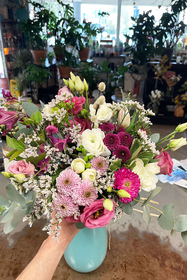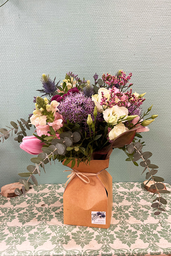 Le prix d’un bouquet varie en fonction des fleurs choisies et de la taille de la composition. Chez Escale Fleurs, nous proposons des bouquets pour tous les budgets, allant des petites compositions aux bouquets plus élaborés, soit allant de 15€ à + de 50€.